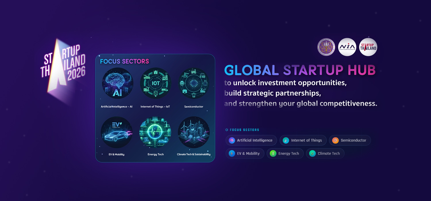 LAST UPDATE ดูทั้งหมด นวัตกรรมประหยัดพลังงาน: “เอ็นเนอร์ยี่อ็อฟติง” กับระบบ Smart VAR Generator พลิกโฉม Smart Factory/Building “WiPLUX” จาก อินเทลเล็คท์ เน็ตเวิร์ค เว็บ: อัจฉริยะแห่งการจัดการพลังงานไฟฟ้า พลิกโฉมอุตสาหกรรมด้วย DeepTech Modela AIoT: ปลดล็อกศักยภาพธุรกิจด้วย AI + IoT ที่เข้าถึงได้จริง! สตาร์ทอัพ Deep Tech ไทย ที่พร้อมก้าวสู่ตลาดโลก รีเวสเทค” พลิกขยะพลาสติก-วัสดุธรรมชาติ สู่ “เม็ดพลาสติกรีไซเคิลเชิงวิศวกรรม” นวัตกรรมรักษ์โลก ตอบโจทย์ ESG นวัตกรรมเปลี่ยนโลก: “ฮีลสเฟียร์” (HealSphere) จาก ฮีลแอนด์โซล เทคโนโลยี – ระบบนิเวศสุขภาพจิตอัจฉริยะก้าวล้ำด้วย AI, EEG และ VR เปลี่ยนทุกคนให้เป็น AI Engineer ด้วย “DUSCAP AI Eyes” แพลตฟอร์ม AI สัญชาติไทย ไม่ต้องเขียนโค้ด! Live Probiotic Mixer: ปฏิวัติวงการอาหารและเครื่องดื่ม ด้วยไซรัปโพรไบโอติก “สูตรจืด” จาก บริษัท สุขุมนุ่มลึก จำกัด อวาแกน แพลนต์เบสชีส” (AVAGAN Plant-Based Cheese) ทางเลือกพรีเมียมเพื่อสุขภาพและความยั่งยืน จากบริษัท เบนเดคส์ จำกัด CONNEXT ดูทั้งหมด ขับเคลื่อนสตาร์ตอัปไทยสู่ตลาดโลก: Scaleup Impact! Thailand x Sweden Global Startup Acceleration Program Global Startup Hub: Gateway to SEA เพิ่มโอกาสในภูมิภาค กับ เวียดนาม สิงคโปร์ อินโดนีเซีย “เกาหลีใต้” จุดหมายแห่งโอกาสสำหรับสตาร์ตอัปไทยที่ต้องการเติบโตระดับโลก BUZZEBEES ผู้สร้าง Engine หลังบ้านช่วยส่งเสริมการตลาดให้ลูกค้า ปฏิวัติวงการ Loyalty Platform และ CRM ไทย แพลตฟอร์มที่เราใช้กันอยู่โดยไม่รู้ตัว ตะวันออกกลางโอกาสใหม่ของสตาร์ตอัปไทย AI x Sustainability: โอกาสใหม่ของสตาร์ตอัปไทยบนเวทีโลกที่ต้องคว้า NIA นำทัพ Health Tech ไทยบุกเวทีโลก: บทเรียนและโอกาสจากงาน ASGH 2025 ที่ฮ่องกง “อังกฤษและออสเตรีย” ไม่ใช่แค่จุดหมาย แต่คือสะพานเชื่อมสตาร์ตอัปไทยสู่ตลาดโลก MARKET PLACE ดูทั้งหมด Gensurv Robotics Muvmi Finnomena cWallet Kochii.me More Meat Devers Sati Freshket Radars Point Freshket Coding Arena
